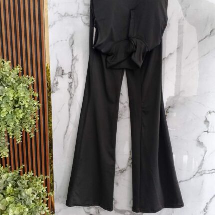 Conjunto Largo Licra y Crop Top Basta Ancha Delux- Negro