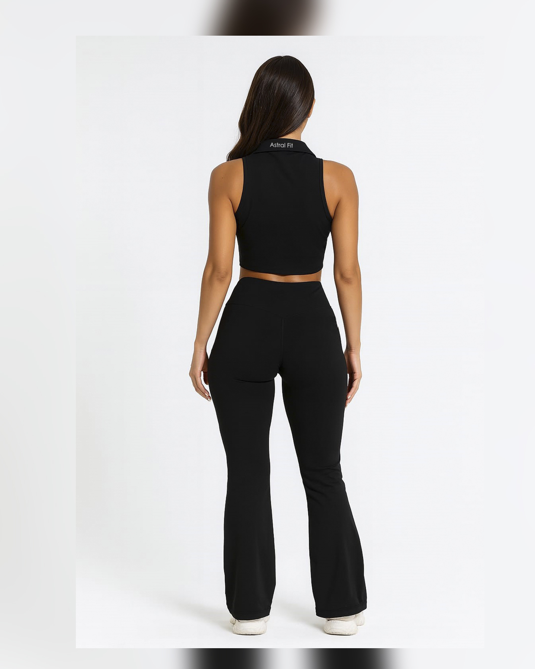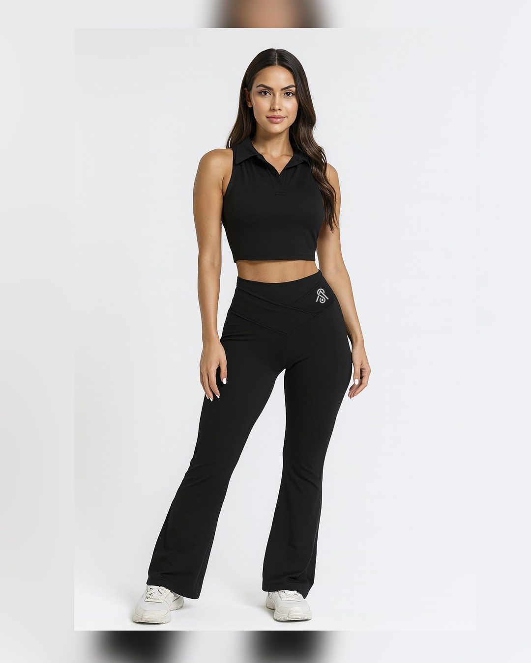Conjunto Largo Licra y Crop Top Basta Ancha Delux- Negro