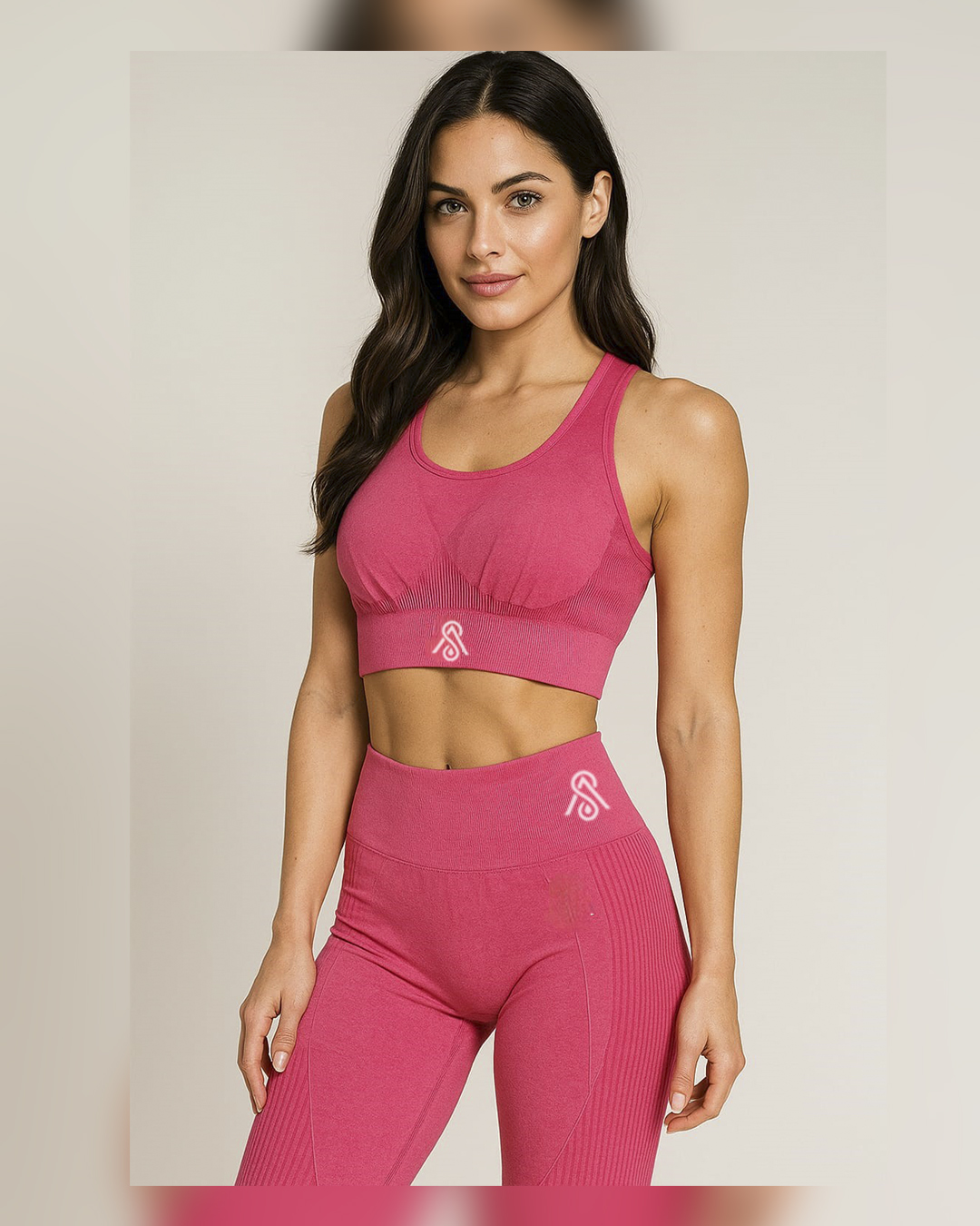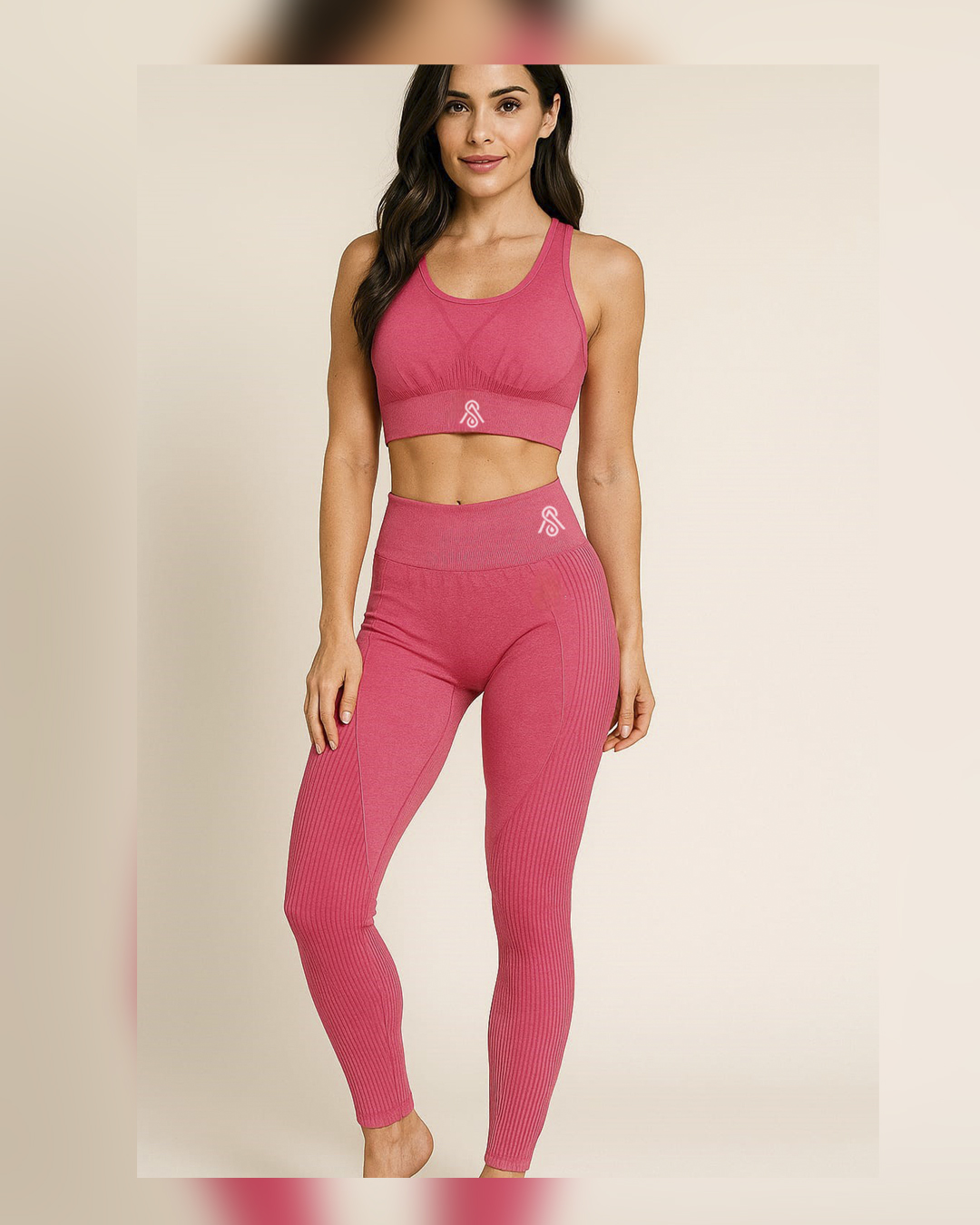 Conjunto Licra y Top Push Up Sin Costura Fucsia