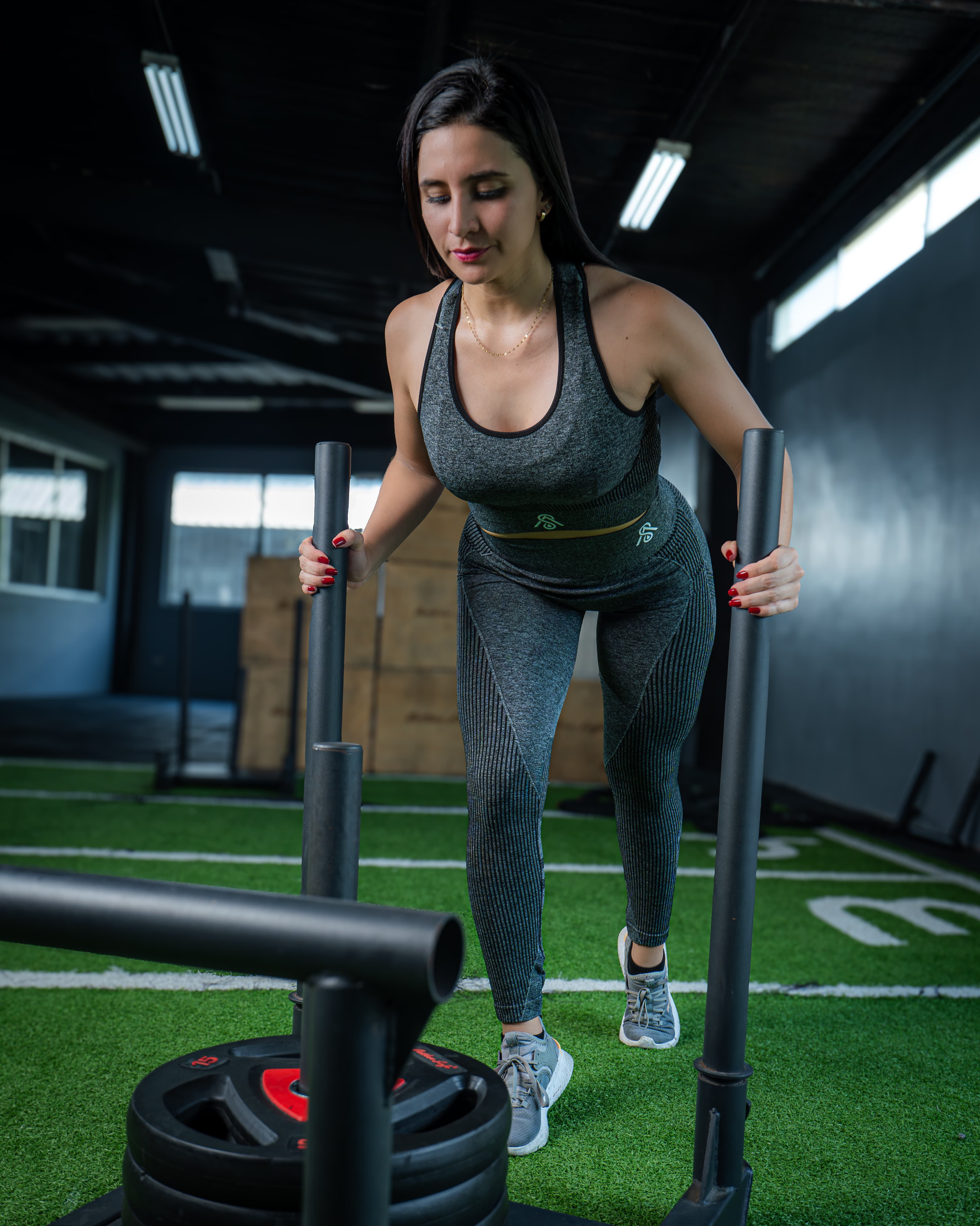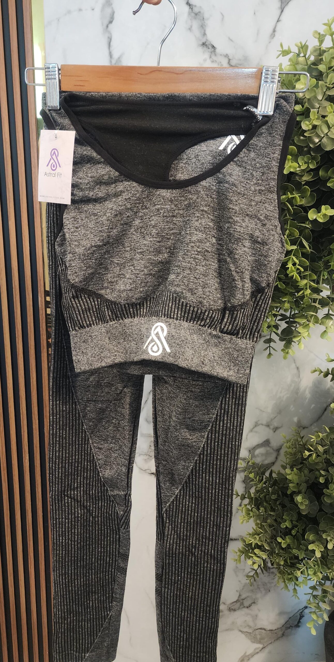 Conjunto Licra y Top Push Up Sin Costura Gris Oscuro